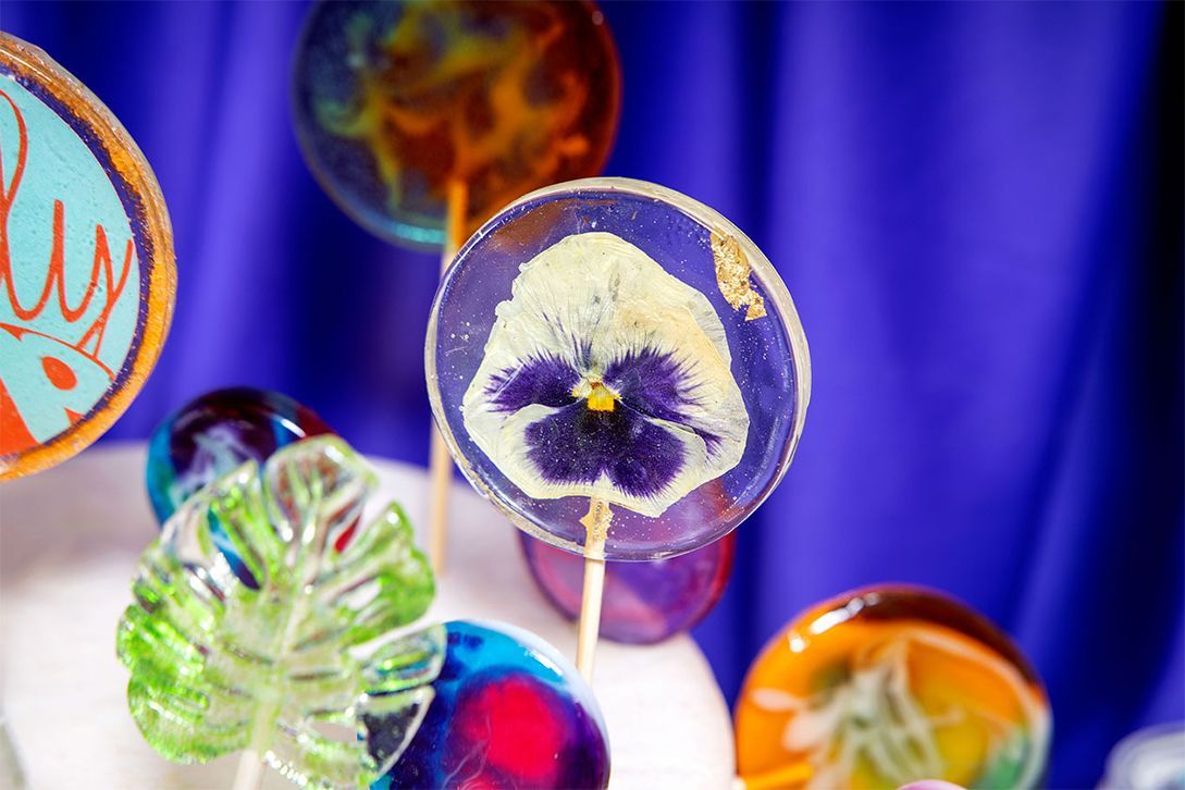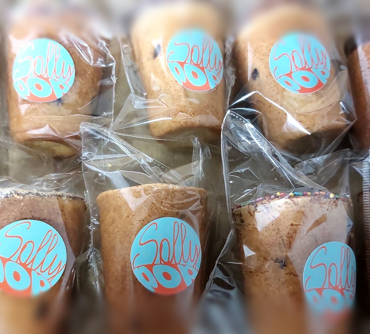 Once the design is finalized, whether by our talented graphic designer or one of our inventive customers, the order is passed to our kitchen; this is where the magic happens. In the kitchen we unmold, fire, and wrap the lollipops, which is all done completely by hand.